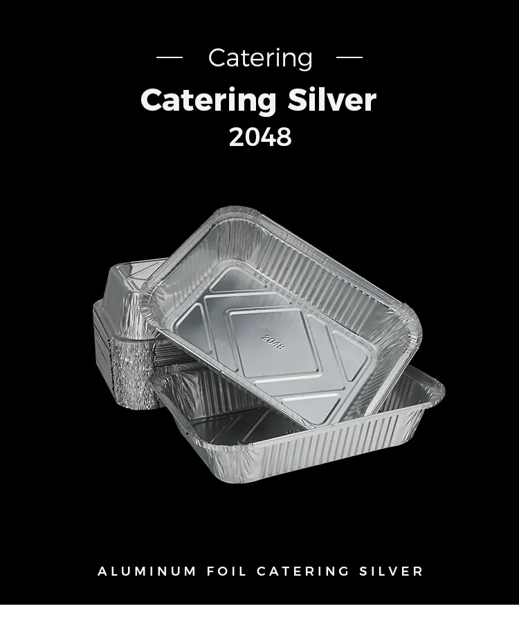 • Кутија за ручак за печење роштиља за једнократну употребу Сребрне посуде од алуминијумске фолијеКутија за ручак за печење роштиља за једнократну употребу Сребрне посуде од алуминијумске фолије