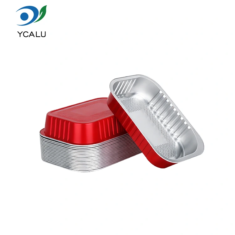 • Једнократни угоститељски печат црвени квадратни контејнери од алуминијумске фолијеЈеднократни угоститељски печат црвени квадратни контејнери од алуминијумске фолије