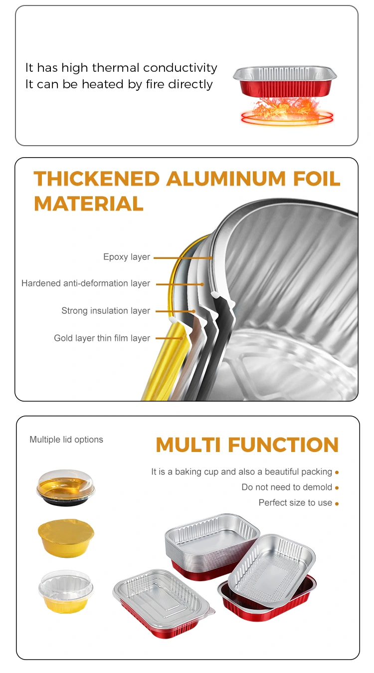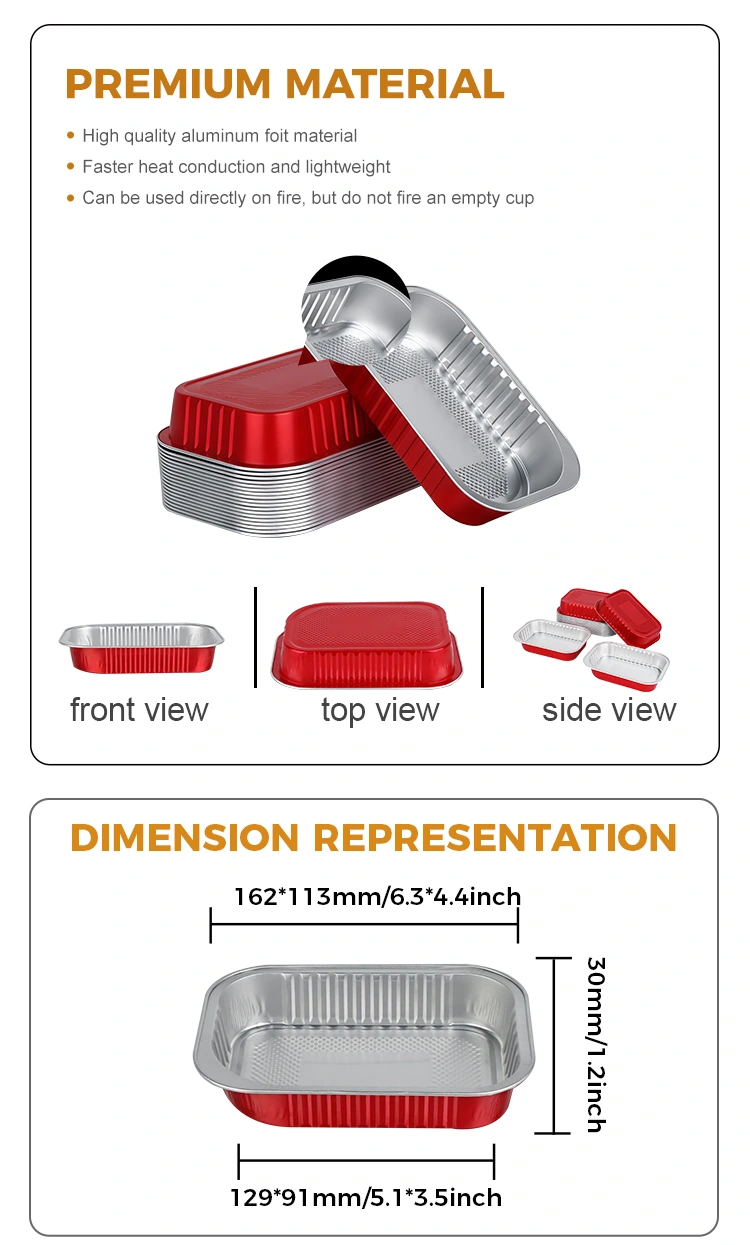 -Ове правоугаоне алуминијумске посуде за понети су чврсте и издржљиве, са јаком и чврстом структуром која може да издржи компресију и деформацију. Ефикасно штити интегритет оброка током транспорта и складиштења, смањујући отпад.