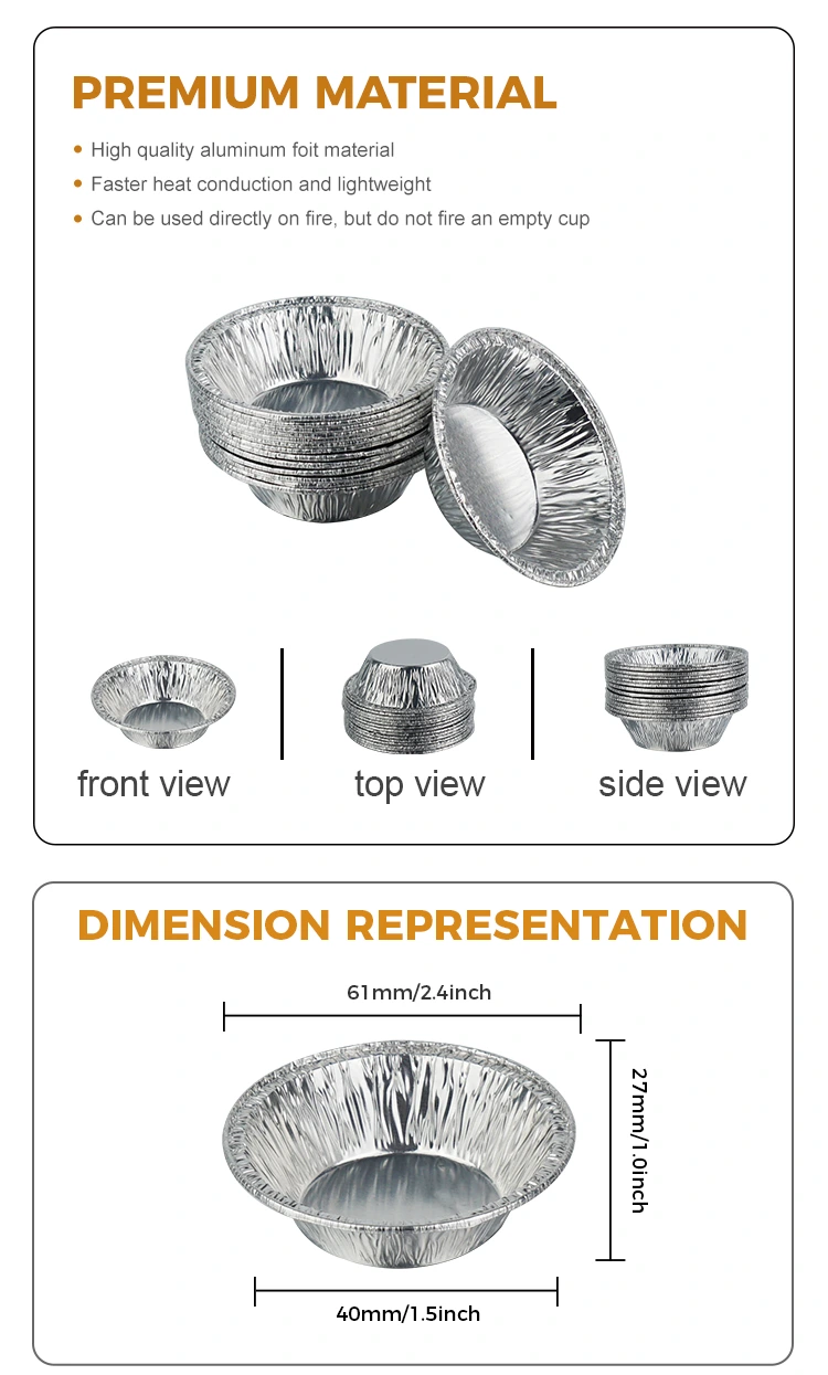 Контејнер од алуминијумске фолије за једнократну употребу од алуминијумске фолије од сребрне алуминијумске фолије направљен је од задебљане алуминијумске фолије за храну и прошао је вишеструке безбедносне тестове. Нема мириса и штетних остатака, чинећи директан контакт са храном сигурнијим. Јединствени задебљани дизајн даје производу одличну подршку и одличну отпорност на високе температуре. Било да се пече на високим температурама у рерни или прецизно загрева у фритези, не деформише се лако или цури, осигуравајући да су колачи од јаја потпуно постављени, а ивице хрскаве и да се неће срушити. У исто време, материјал алуминијумске фолије равномерно проводи топлоту, омогућавајући да се колачи са јајима запеку и да се лакше загреју споља и да се лакше загреју напољу. торте од јаја професионалног квалитета које су златне споља и нежне изнутра.
