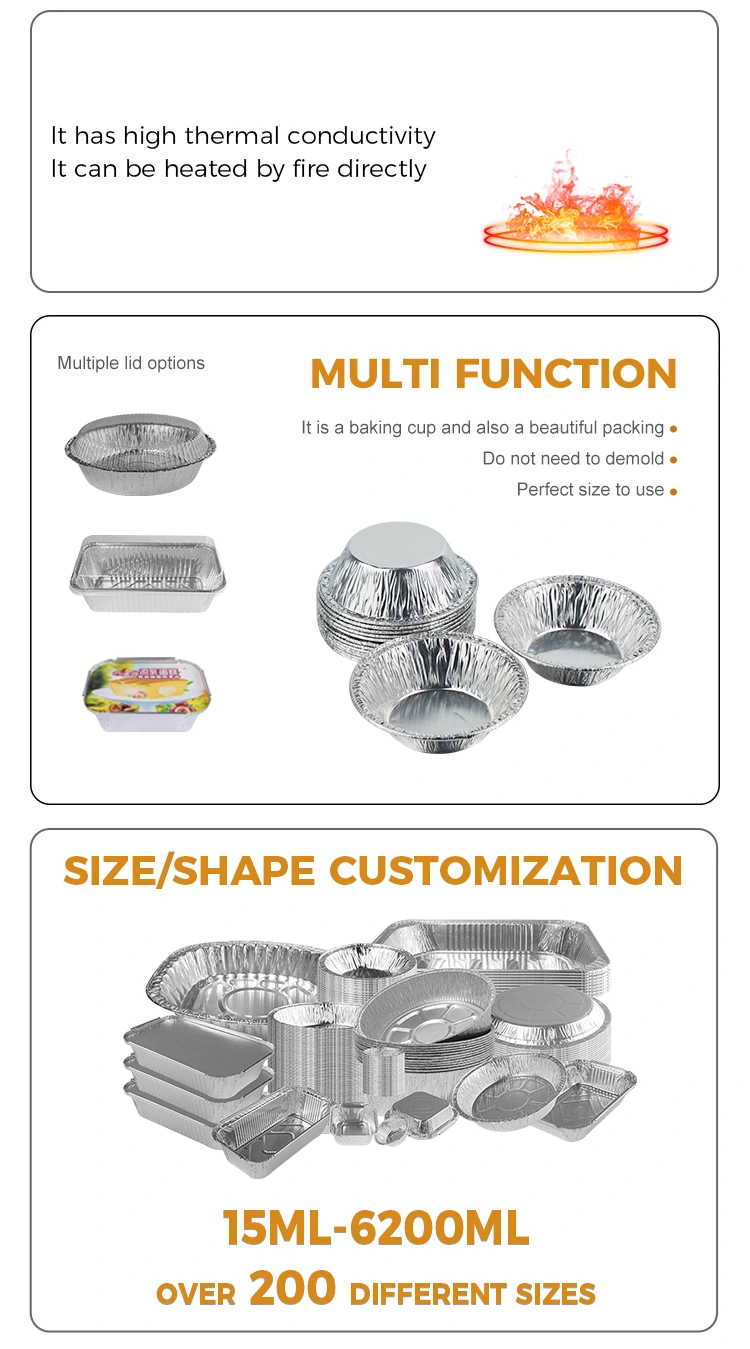 Од породичних окупљања до комерцијалне масовне производње, контејнери од алуминијумске фолије за једнократну употребу од алуминијумске фолије од сребрне алуминијумске фолије су прилагодљиви свим сценаријима, отварајући различите укусне могућности: