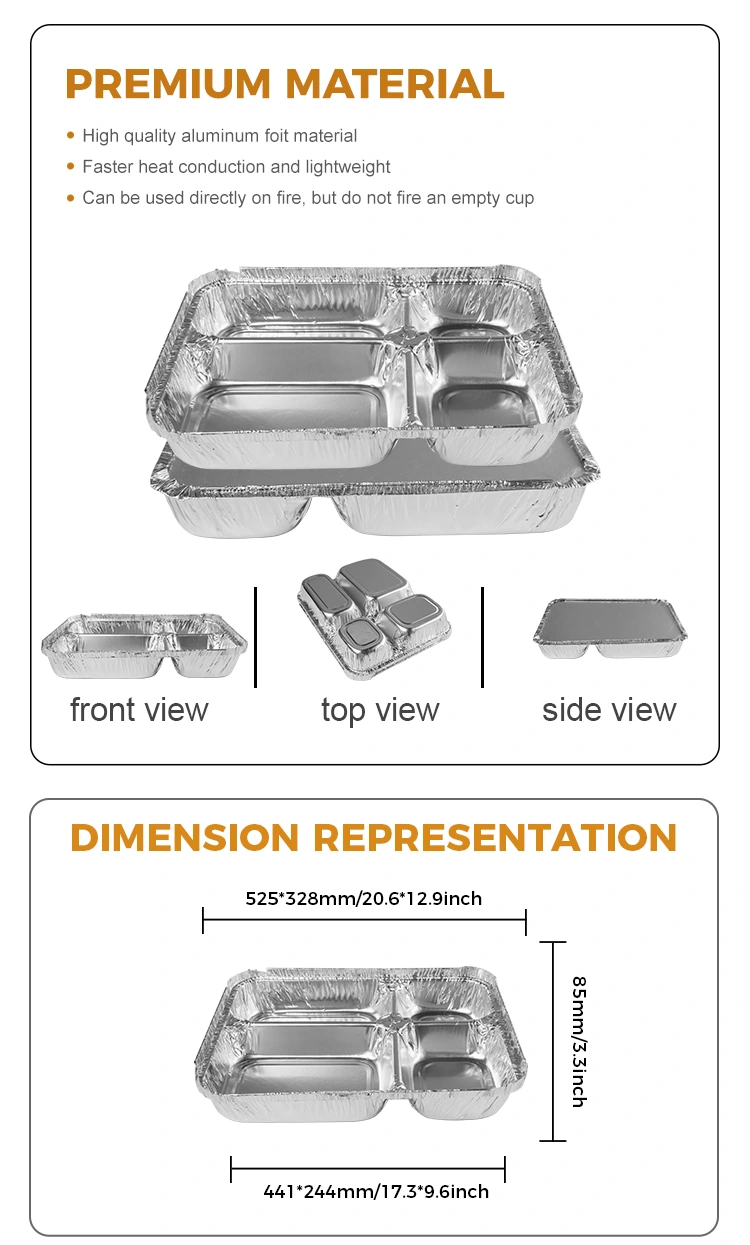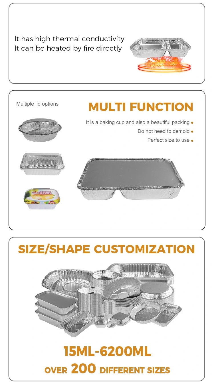 Ова кутија за ручак алуминијумске фолије не само има немисности топлотних изолације, већ се такође може упарити са поклопцем алуминијумске фолије, даљње унапређивање практичности производа. Поред тога, пружамо и прилагођене услуге логотипа за унапређење слике марке и побољшати бодове са меморијама купца.