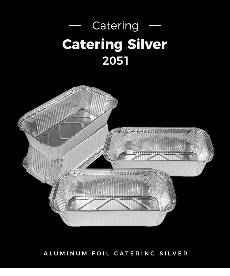 • За једнократну правоугаону печење Сребрни алуминијумске фолијеЗа једнократну правоугаону печење Сребрни алуминијумске фолије