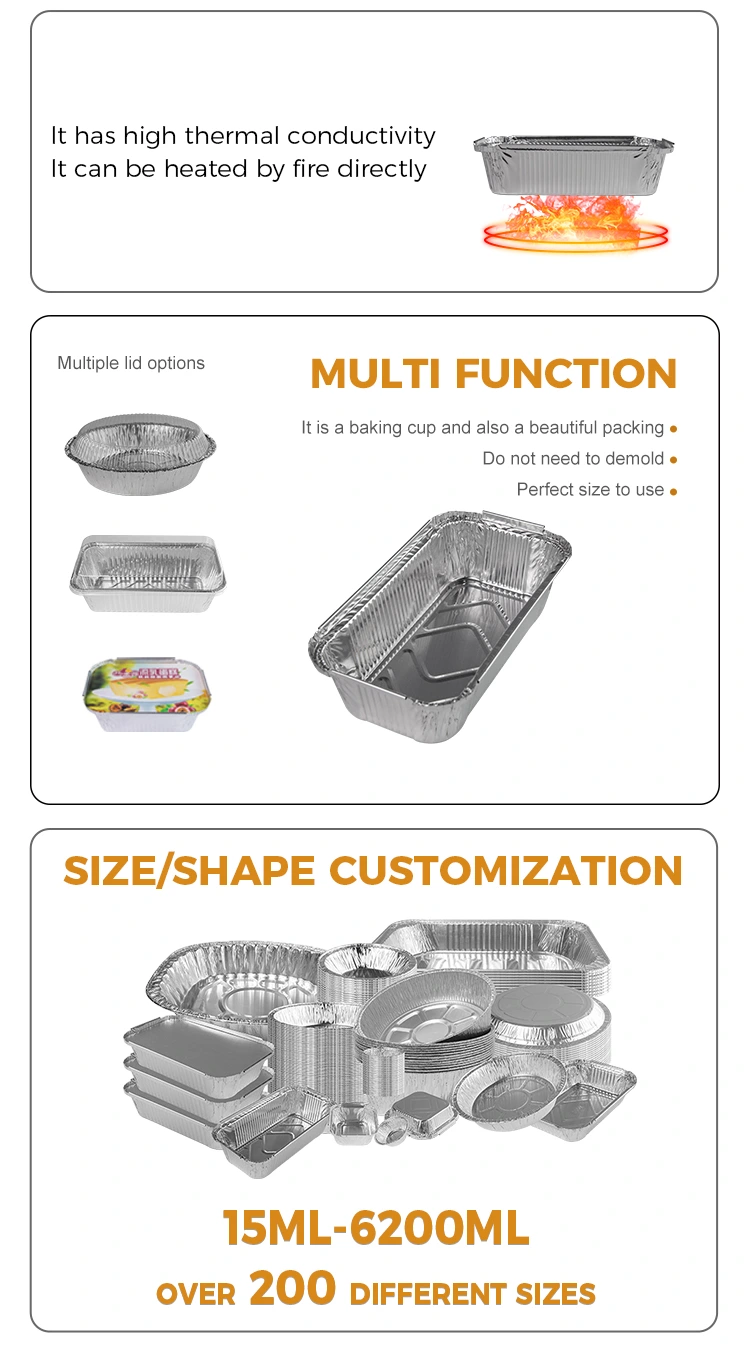 Средњи контејнери за једнократну ликовну ликовну пецу са алуминијумским фолијом из Иунцху алуминијумске фолије је свестрани кухињски алат погодан за различите методе кухања, као што су роштиљ, топли лонац, бесплатан паковање и још много тога. Овај контејнер је довољно компактан да одговара разним лонцима и опреми и долази у разним величинама како би задовољили потребе различитих отворених роштиља отворених пламена. Може се користити за прављење разних прехрамбених производа, попут ваздушних фритеза и друге апликације за опрему, отпорност на топлоту и уље, лако печење.