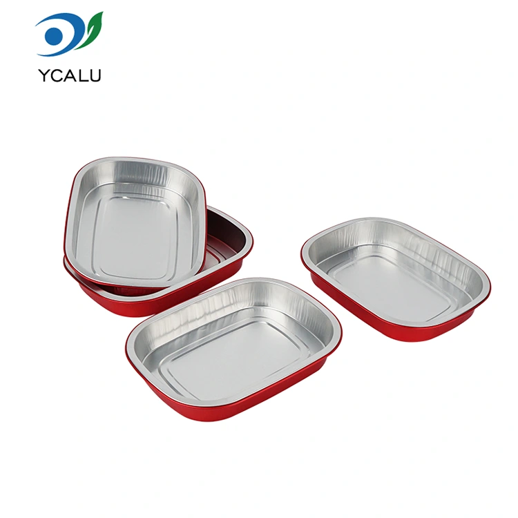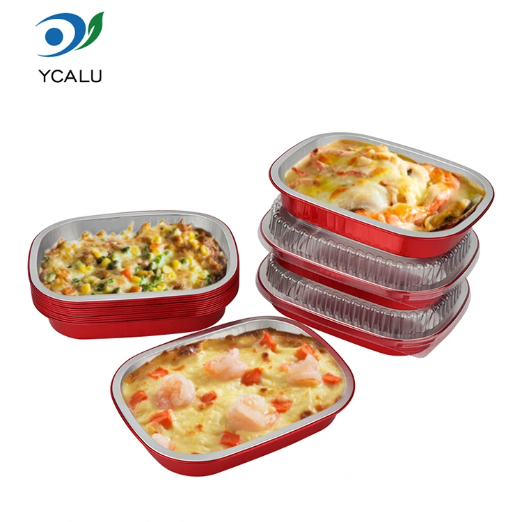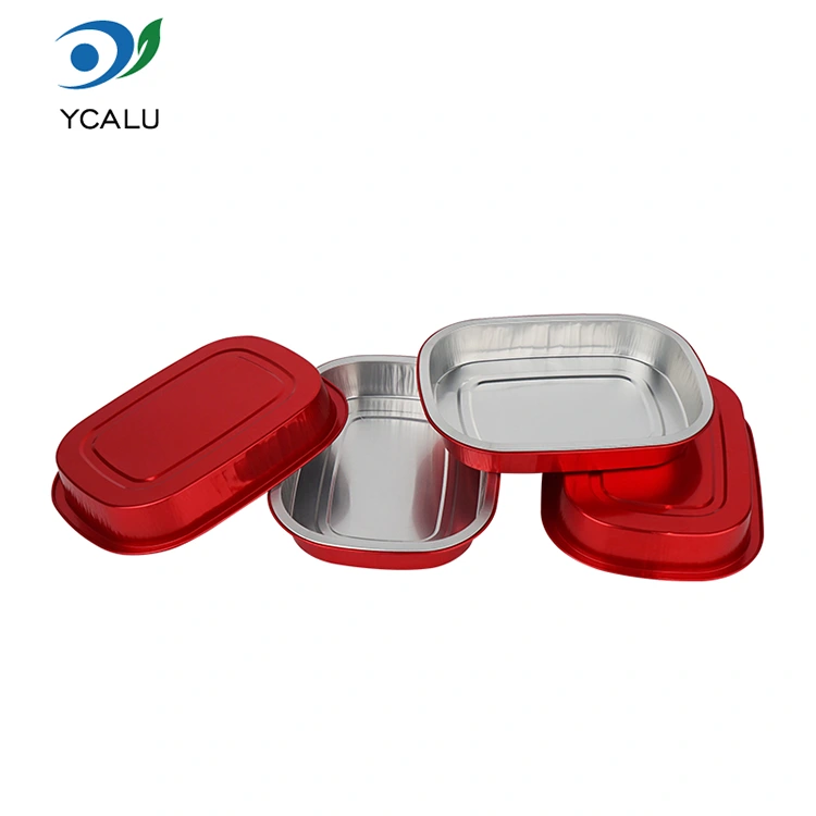 Пекаре и западни ресторани могу да користе квадратне контејнере од алуминијумске фолије за једнократну црвену кутију за ручак за продају дуријана на жару, печеног слатког кромпира и месних тањира на жару. Златна текстура побољшава квалитет производа. Купци их могу загрејати и јести директно без додатног облагања. Продавци хране за понети га користе за испоруку печеног пиринча, пилећих крилца на жару и других јела. Алуминијумска фолија задржава температуру и свежину. Чак и сат времена након испоруке, храна остаје топла и супа не цури.