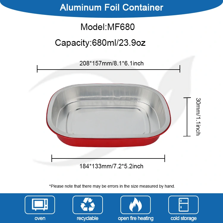 Нудимо више спецификација квадратних контејнера од алуминијумске фолије за једнократну црвену кутију за ручак за ваш избор: