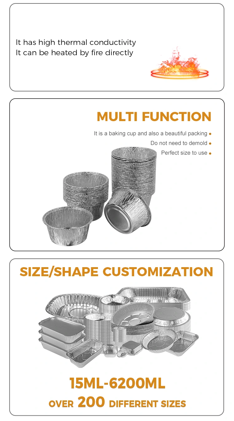Карактеристике: Здрав и еколошки прихватљив, није потребно чишћење, погодан за прављење разних кућних и печених делиција. То је најбољи избор за породице и пекаре. Материјал алуминијумске фолије је безбедан и хигијенски, није потребно чишћење и може се пећи на отвореном пламену, што га чини погодним за прављење укусне хране.
