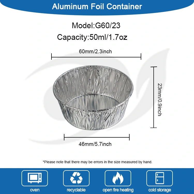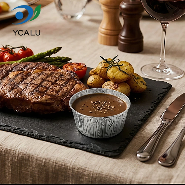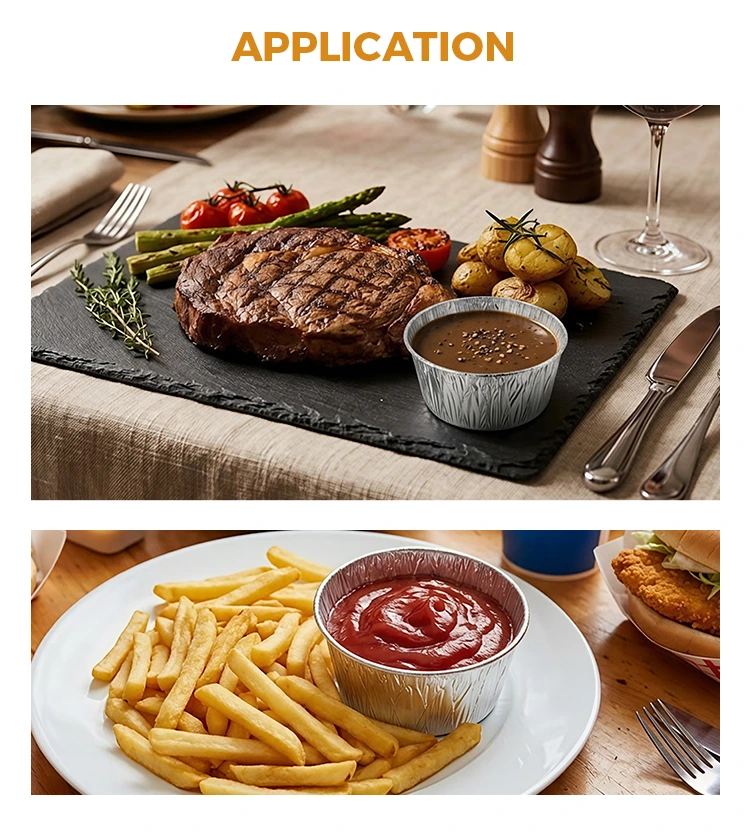 • Контејнери за храну са округлим сосом за једнократну употребу од сребрне алуминијумске фолијеКонтејнери за храну са округлим сосом за једнократну употребу од сребрне алуминијумске фолије