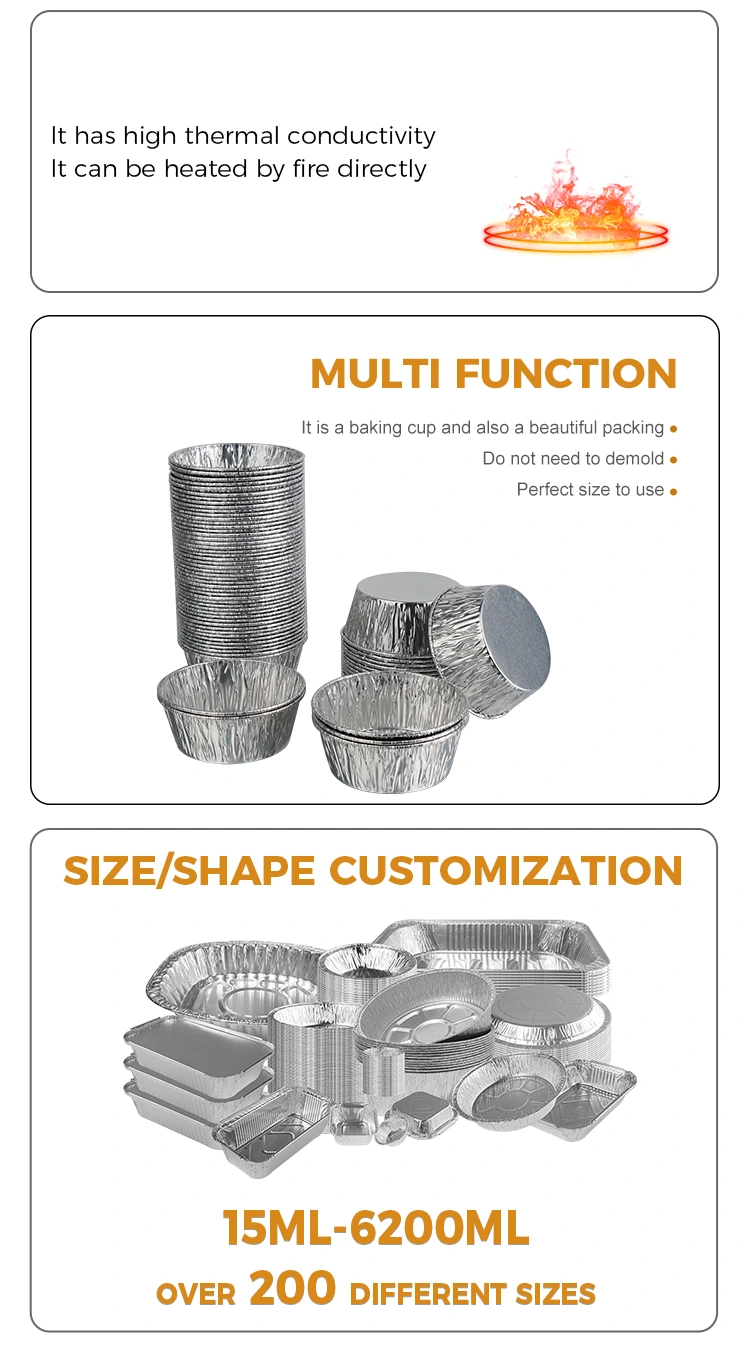 Јунцху алуминијумска фолија добављача за једнократну употребу округлог соса за фритезу Сребрна посуда од алуминијумске фолије Сребрна алуминијумска фолија има густу текстуру и не може се лако оштетити или деформисати. Чак и ако садржи густе сосове и састојке за супу, може се чврсто држати без цурења или колапса. Рубови су ојачани и притиснути, што их чини глатким на додир, неће вам огребати руке и сигурније су за руковање. Дизајн за једнократну употребу, баците га након употребе, штедећи вам невоље око чишћења контејнера. Не само да може побољшати ефикасност, већ и одржавати животну средину чистим и уредним у сценаријима као што су паковање за понети, угоститељске радње, камповање и пикници. Штавише, материјал алуминијумске фолије се може рециклирати, зелен и еколошки прихватљив, и неће изазвати превелико оптерећење животне средине ако се одбаци након употребе, узимајући у обзир погодност и заштиту животне средине.