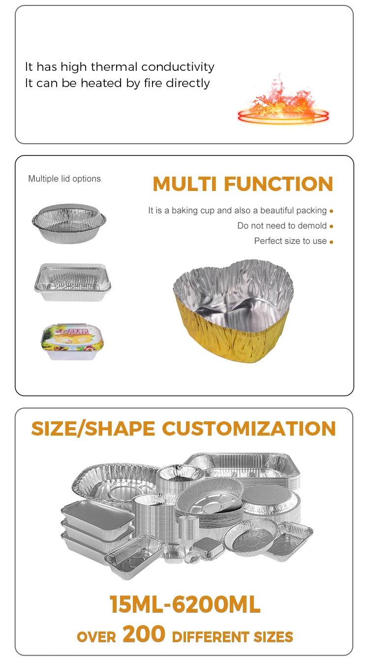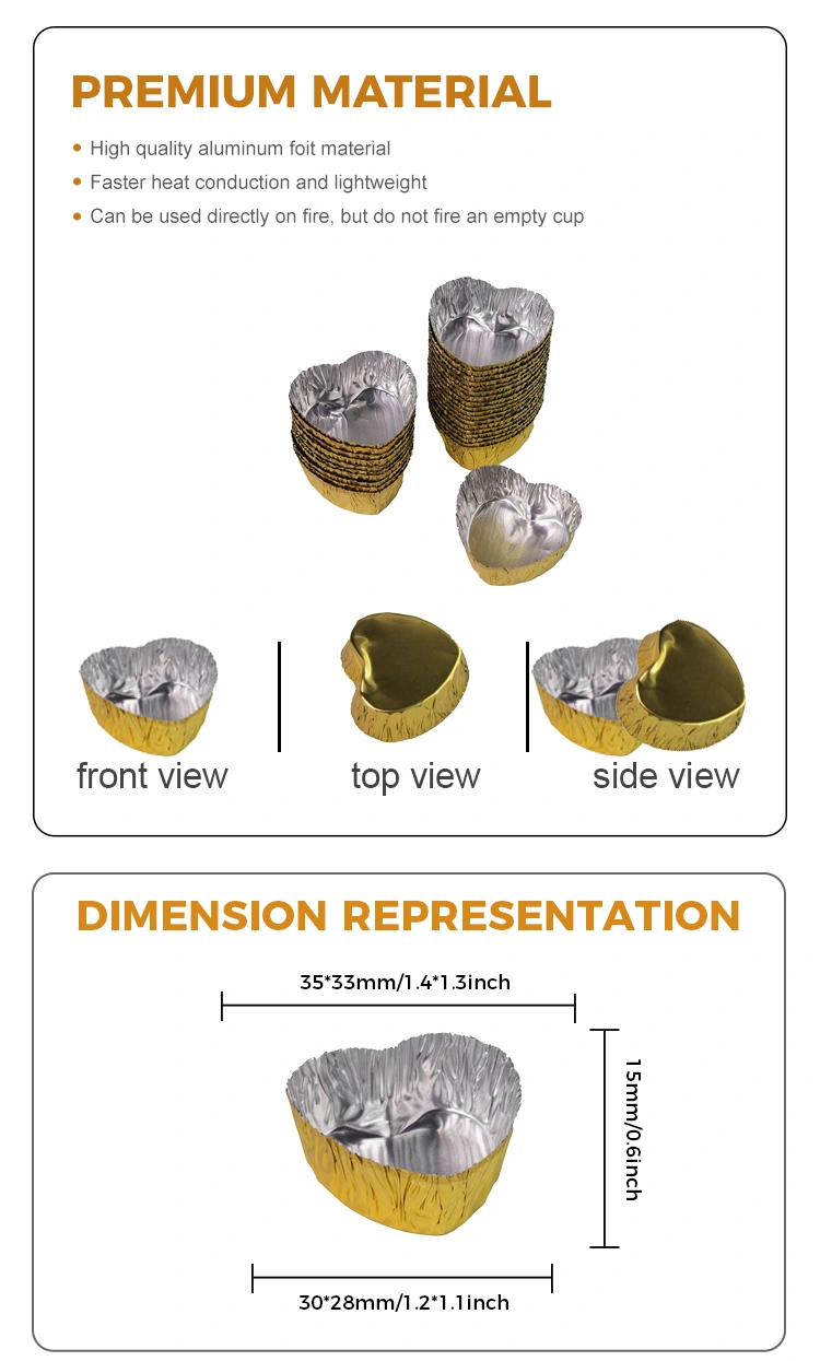 ​Yunchu aluminum foil supplier Heart-shaped mini-bake Silver Aluminum Foil Food Container is very suitable for small packaging, baking applications, unique design, heart-shaped design, can meet a variety of uses, one thing for multiple purposes, the use can place a variety of small food, in addition, the Heart-shaped mini-bake Silver Aluminum Foil Food Container surface is pleated design, which can prevent small snacks and chocolates and Остала храна из клизања и може побољшати отпорност на клизање, могу се прилагодити разноликост боја.