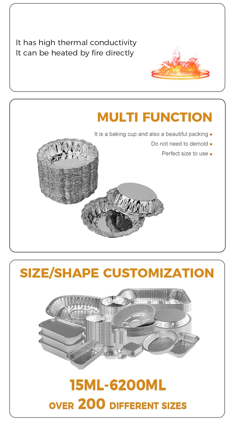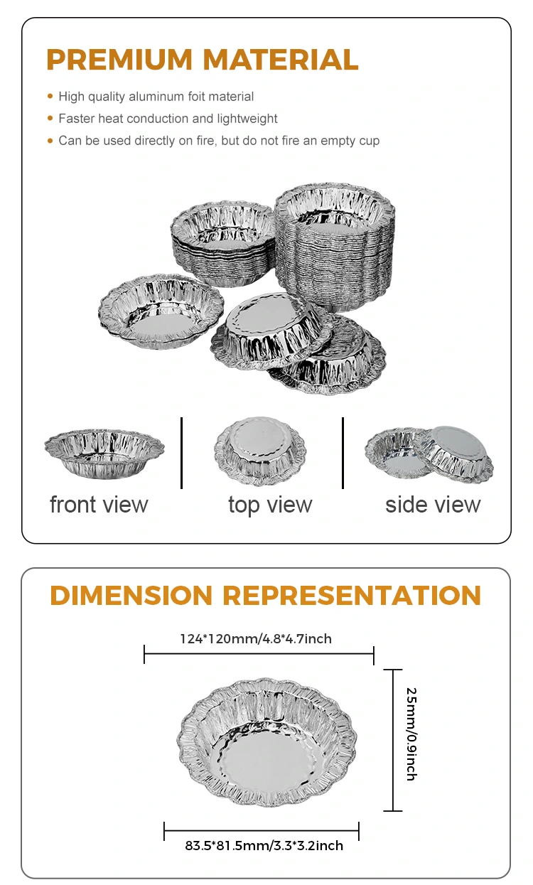 Иунцху алуминијумска фолијска добачарка Лаце Округла за печење Силвер Алуминијумске фолије Контејнери за печење, јаја Тартс, јаја, и пржење ваздуха, са многим функцијама, густим и издржљивим за печење. Када одаберете калупе за печење, шта највише цените? Да ли је материјал поуздан? Да ли је лако демолтовати? Да ли је то прилагођен корисницима? Ова коприва за печење кочије од чипке сребрна алуминијумска фолијска контејнер задовољава ваше потребе за печењем калупа! Једноделни обликовани, задебљани и издржљиви за печење, направљен од 8011 Фоот Цонтацт Алуминијумски фолијски материјал, сеф за контакт са храном, није лако деформисано или цури уједначене проводљивости, није лако да се постави, не лако се отпора, са чипком олакшавају, са чипком је олакшало, а дно је округло и главоло.