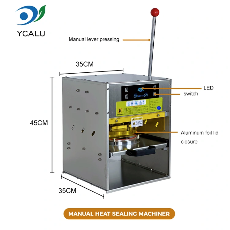 • Ручна машина за топлотно заптивање са посудама од златне алуминијумске фолијеРучна машина за топлотно заптивање са посудама од златне алуминијумске фолије