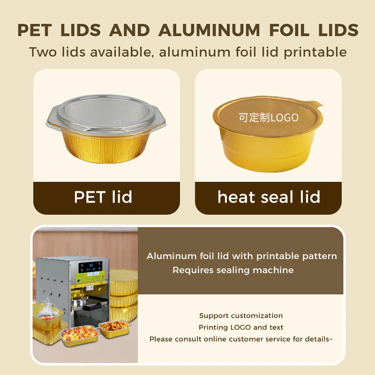 Иунцху је професионални произвођач и добављач контејнера од алуминијумске фолије у Кини. Наша ручна машина за топлотно заптивање са посудама од златне алуминијумске фолије има двоструке предности у погледу нивоа изгледа и снаге. Постала је пожељна комбинација за кетеринг за понети, групну доставу оброка и индустрију готове хране. Не само да може да истакне квалитет бренда, већ и да реши проблематичну тачку паковања, смањи трошкове и повећа ефикасност за трговце, и пружи потрошачима уверљиво искуство.
