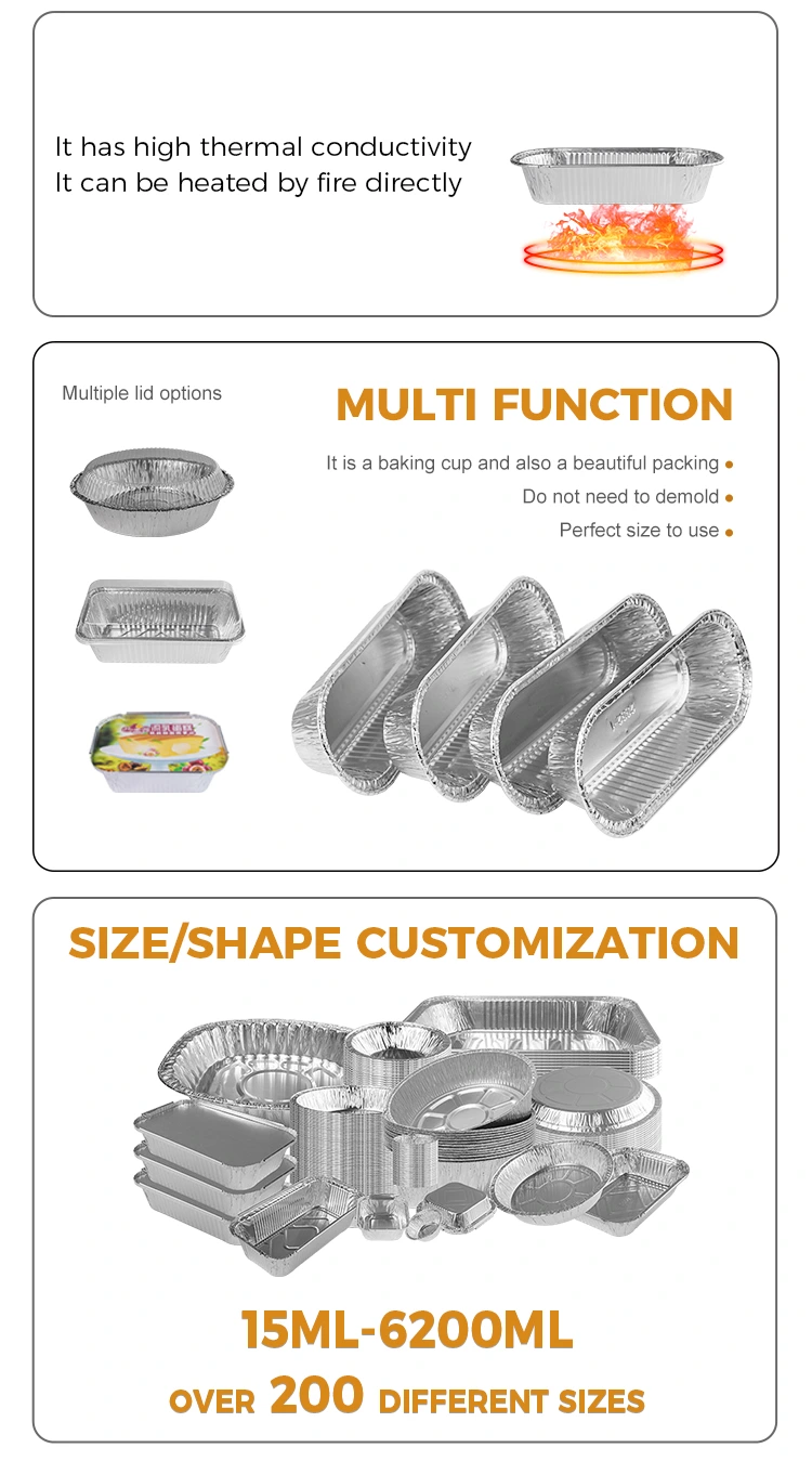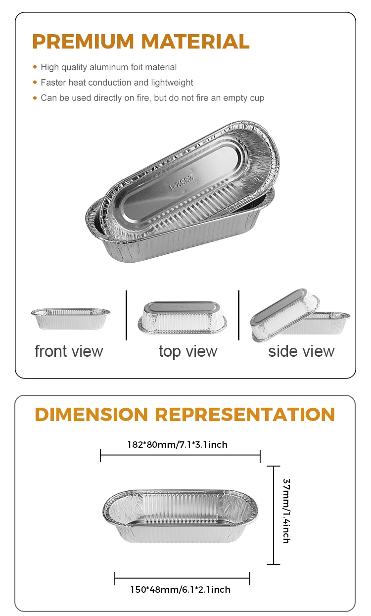 Yunchu Aluminum Foil Supplier Oval air fryer baking Silver Aluminum Foil Containers is a type of container that can be used for steaming, boiling, baking, baking and other purposes, and can be used for sauces, dipping sauces, small condiments and baking sample samples. 8011-0 Тип Алуминијумске фолије Материјал, затезач отпорност и корозија имају добру издужење, задебљани алуминијумску фолију, издржљиви и није лако пробити вољу, хемминг, предњи и задњи полукружни дизајн, не боли руке, интегрисано калупљење, зидне површине је глатко као огледало, богата величина.
