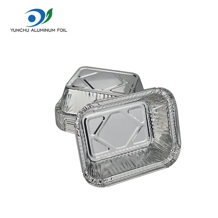 Yunchu aluminum foil supplierRectangular barbecue Silver Aluminum Foil Containerscan also be widely used in various occasions, party barbecue can be burned and steamed, merchants can customize pattern printing takeaway packaging with personality to lead the trend, open flame heating, oil lamp heating, uniform heat conduction, uniform heating at the same time anti-paste non-stick pan, placed in the air fryer can also be used immediately, Доњи конкавни и конвексни дизајн, играју улогу против клизања; Учвршћивачи се додају у страну да би побољшали тврдоћу производа; Дизајн ивице омота око поклопца и браве на температури хране.