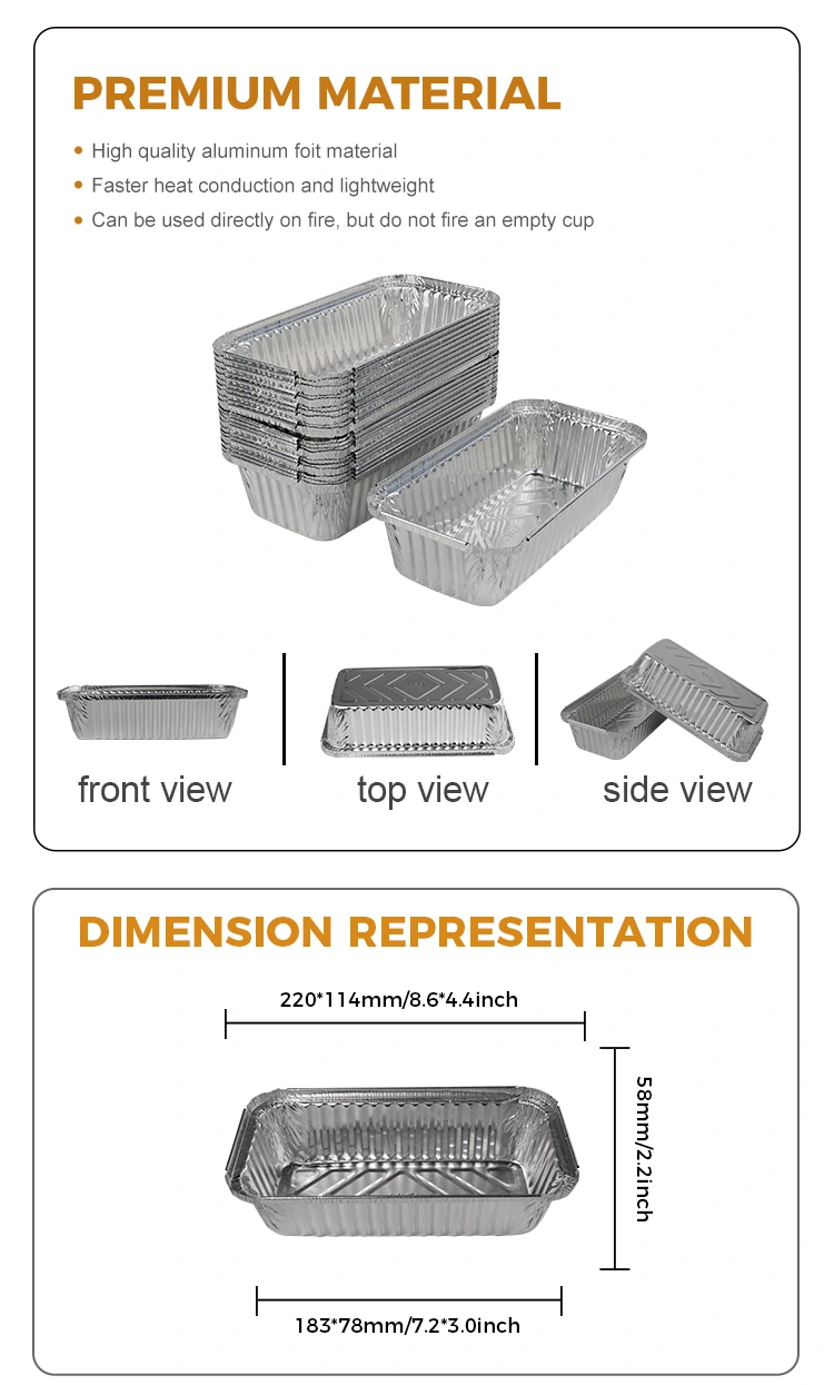 Правокутни роштиљ задебљани сребрни контејнери за фолију од алуминијума