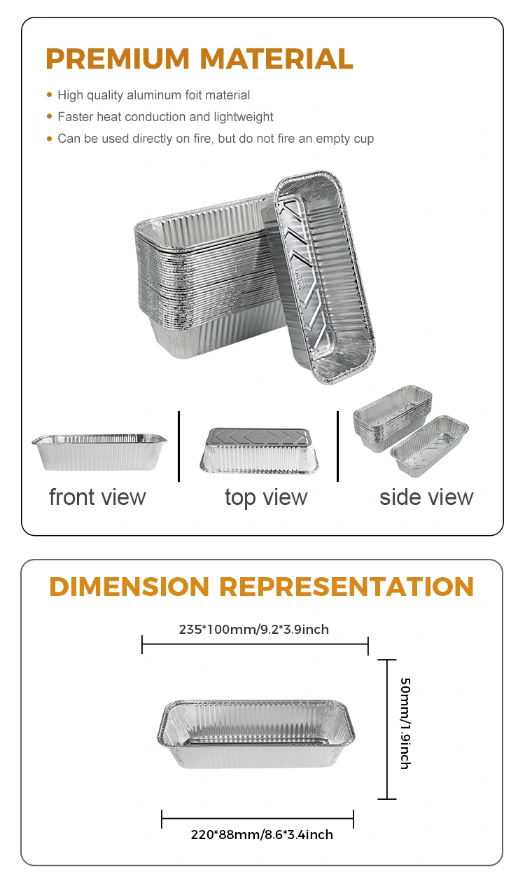 Овај контејнер није само топлотно отпоран и отпоран на уље, већ је такође врло лако испечен, чинећи га посебно погодном за употребу у ваздушним фритерима и другом опреми. Једноставно ставите храну или супу у њему када га користите без бриге о томе да се осуши. За кућне кориснике, још је чистији и згоднији, са десигн без прања који чисти лако и брзо. Правокутни роштиљ задебљани сребрни алуминијумска контејнер фолије неопходан је помагач у вашој кухињи. Да ли је за свакодневно кување или посебне прилике, нуди савршено решење. Дођите и купујте да свој живот кувања учините згоднијим и укусним!