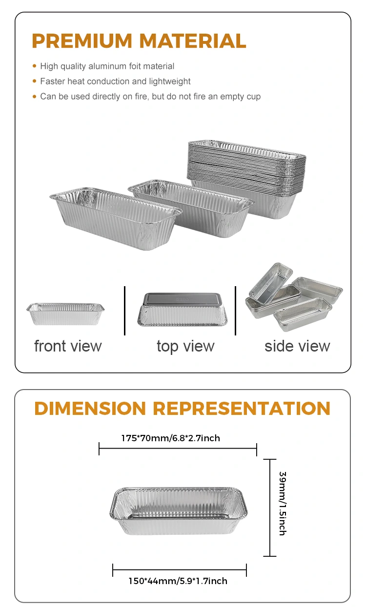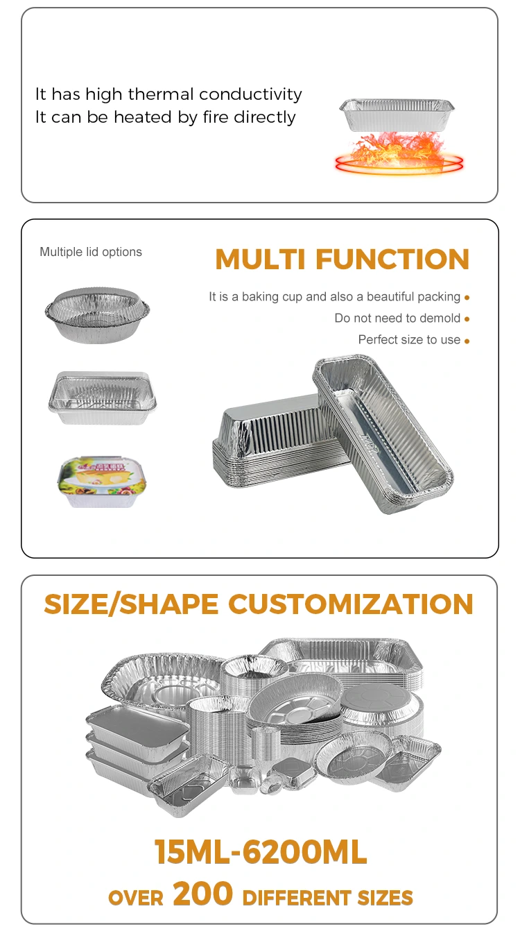Иунцху алуминијумски добављач алуминијумског добављача Бресне лидери Сребрни алуминијумске фолије Подржава различите методе грејања, тако да можете уживати у забави у било којем тренутку, а ефекат очувања топлоте је изванредан. Надограђени и задебљани дизајн, одабрани висококвалитетни еколошки прихватљиви материјали, алуминијумска фолија за храну, једнодијелна структура ливења је поузданија. Дизајн пресореног ивице брзо и равномерно врши топлоту, што је мање вероватно да ће палити дно током печења и олакшати храну за демонстрацију. Овај производ се широко користи у области роштиља и печења, посебно погодан за различите прилике, као што су камповање, пекаре, штандови роштиља, испоруке од претреса и суши ресторани. Дизајн је добро прилагођен практичним потребама већине домова и продавница.