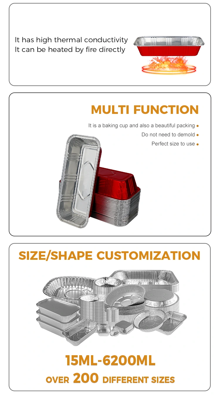 Иунцху алуминијумска фолија вам пружа висококвалитетне правоугаоне црвене посуде за пекаре за пекаре од сребрне алуминијумске фолије, које су дизајниране да буду издржљиве и отпорне на топлоту, могу равномерно да проводе топлоту како би спречиле угљенисање и имају снажно заптивање како би биле свеже.