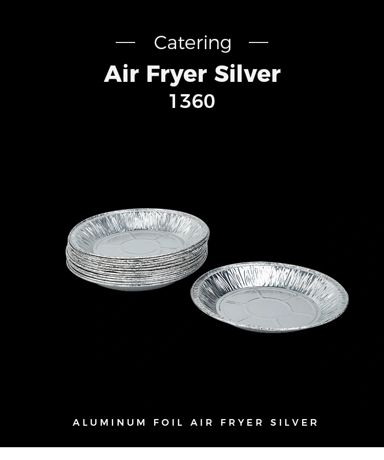 • Округли ваздушни фриер пече сребрне алуминијумске фолије контејнер за хрануОкругли ваздушни фриер пече сребрне алуминијумске фолије контејнер за храну