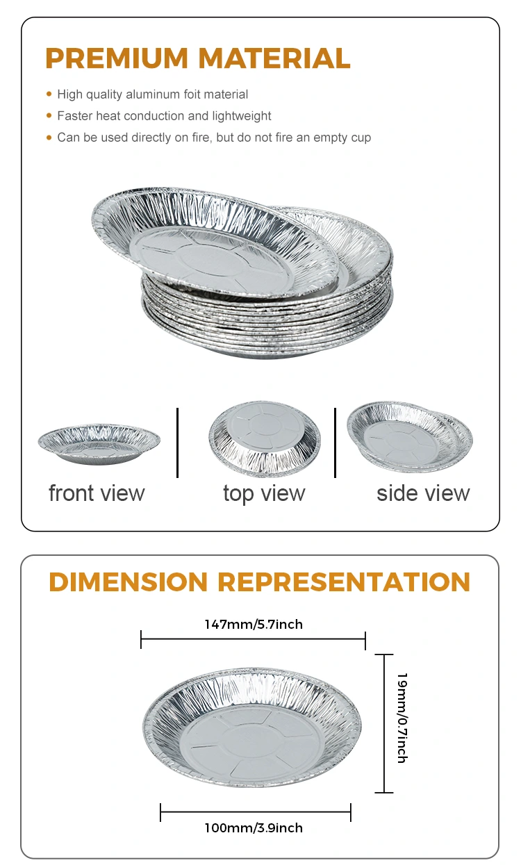 Иунцху алуминијумска фолија Округла ваздуха Фриер Силвер Алуминијумска фолија Контејнер за хигијену и заштиту животне средине, израђен је од задебљаних и корозијских материјала, а не лако се деформише, не може се бојати високе температуре, не боји се од високе температуре, не боји се од високе температуре. Може да издржи високе температуре до 250 ° Ц, чинећи га погодним за различите методе кухања, као што су печење високих температура, рерна и роштиља, без бриге. На располагању су више спецификација за испуњавање различитих потреба за печењем различитих величина, што вам омогућавајући да се лако носите са различитим захтевима за производњу хране.