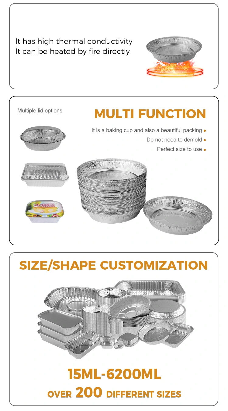 Иунцху алуминијумска производња фолије на велико округло ваздушно фриер Пећница Силвер Алуминијумске фолије Контејнери Дизајн Изврсно, лагано и практично, Тежина је око 10,23 грама, уштеда простора, уштедама, на плочитну текстуру на алуминијумском фрижњом, али ивица је висока, али ивица је велика, али ивица је ивица и не ивица и не ивица је ивица и не ивица и ивица је ивица. Доступне су, могу се одабрати различите величине, а за печење на високом температуру нема осебујног мириса, веома је погодан за велике супермаркете за означавање и скенирање рада након прехрамбене хране, његов капацитет је простран, довољно је да држи све врсте свакодневне хране и грицкалицама, да би задовољили све врсте свакодневне хране и заграде. Као једнократни производ, нема потребе да се то очисти, значајно смањујући трошкове рада. Поред тога, производ је опремљен алуминијумском фолијом за кућне љубимце и алуминијумским папиром за папира, који има одлично цурење нафте и водоотпорне перформансе и не може да се деформише на високим температурама, на тај начин се на тај начин прилагођава сажељни узорак алуминијумске фолије, који могу да побољшају прегледи производа и компанију, који могу да побољшају признавање производа и компанија, производ строго, а производ може да побољшају прегледи производа и компанија, производ строго одликује. Стандарди за контакт са храном како би се осигурала сигурност и квалитет хране.