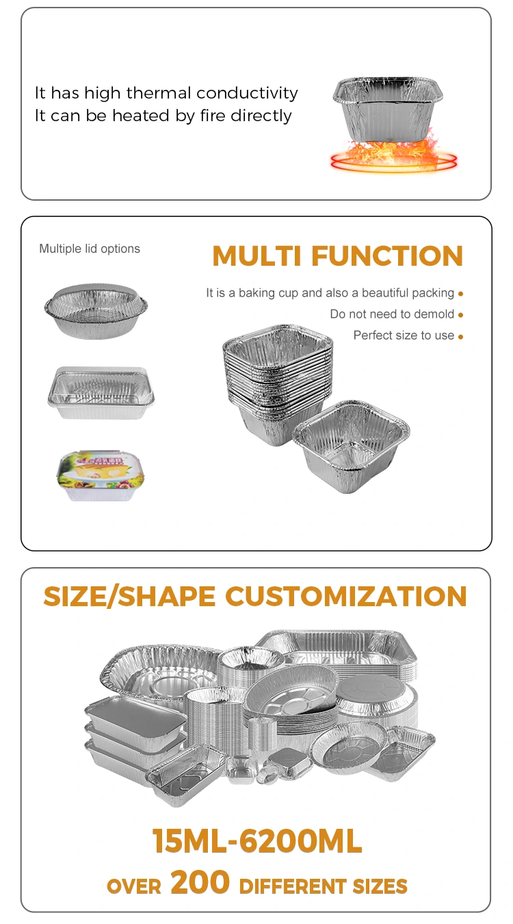 Контејнер Фриер Фриер Скуаре Цваиер Средни контејнер фолије коју пружа добављач иунцху алуминијумске фолије погодан је за разне прилике, укључујући ваздушне фритезе, мале пећи, угоститељство и кафетеријске перене. Није прикладно само за прављење остриге Вермицелли, десертног црвеног пасуља, пилећих крила на жару и пари се може упарити са разним састојцима и широко се користи у свим аспектима угоститељске индустрије. Контејнер има дизајн који се не држи и анти-штапић, са конкавном и конвексном дном структуром која олакшава храну да пусти калуп и одржава бољи изглед. Било да се пече или паре на отвореном пламену, лако се може поднијети без ограничења. Његов материјал је чврст и издржљив, што га чини погодним за употребу не само у пећницама и фритезима ваздуха, већ и на отвореним решеткима или парницима, што је прикладно и брзо. Поред тога, површина контејнера је глатка и равна, а ивице су заобљене и нису лако огребати руке, па чак и ако постоје набори, неће утицати на стисак. Нудимо разне обликове танки, укључујући квадратне, округле и стилове у облику срца, како бисмо испунили ваше разнолике потребе. Ако сте заинтересовани, слободно се посаветујте са нашим особљем служби за кориснике за више детаља.